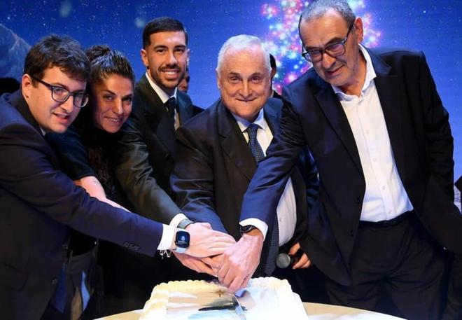 晚会最后,主帅萨里在舞台上切蛋糕并致辞:“亲爱的拉齐奥人,我希望能带给你们更多满足感:我爱你们。”为这场圣诞庆祝活动画上了温馨的句号。